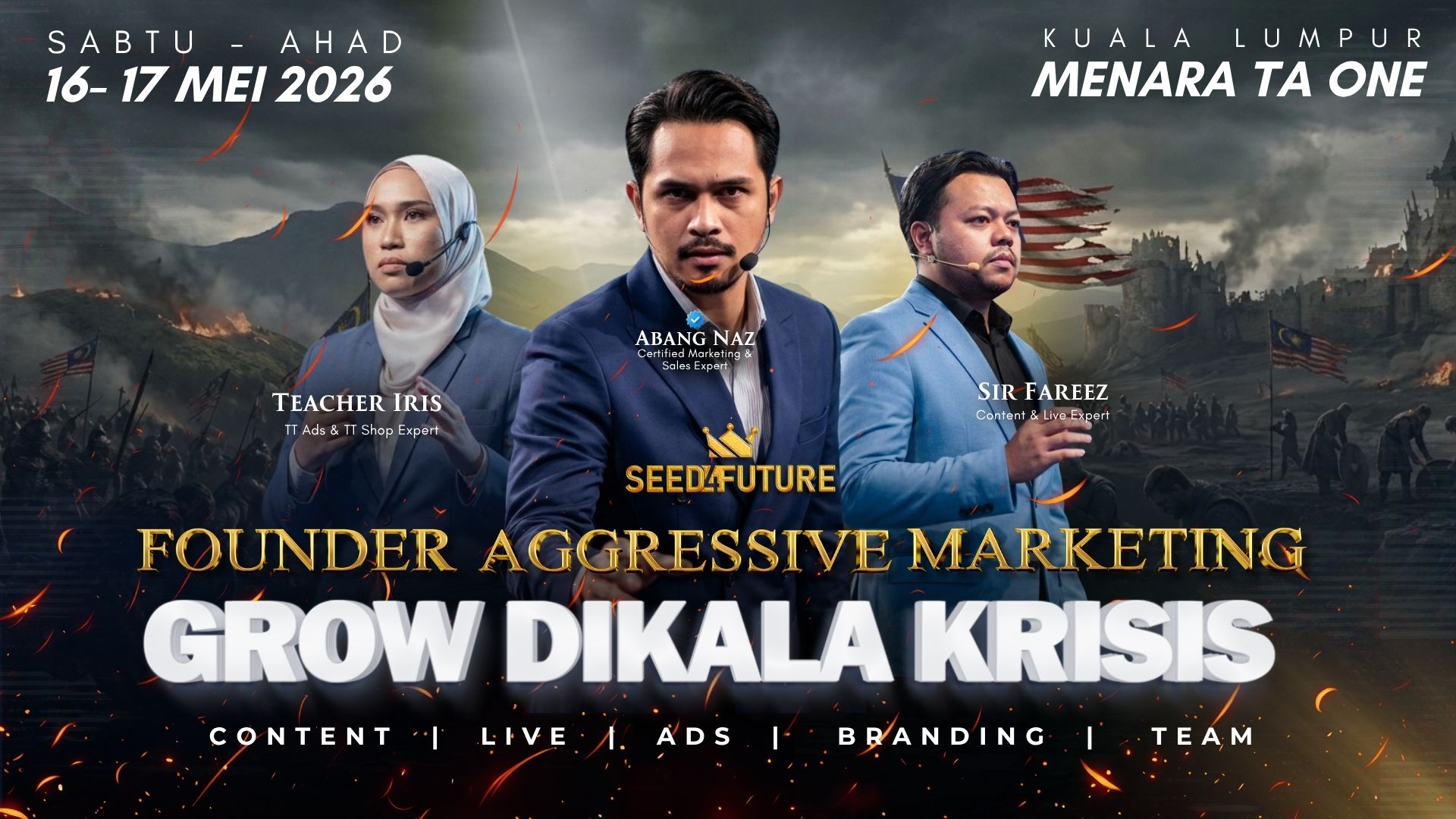 1. Kelas ini akan berlangsung secara OFFLINE di TA ONE Kuala Lumpur.